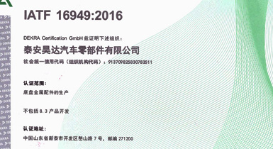 公司擁有IATF16949:2016國(guó)際標(biāo)準(zhǔn)質(zhì)量管理體系認(rèn)證,精良的設(shè)備、先進(jìn)的生產(chǎn)工藝及完善的質(zhì)量檢測(cè)保證了公司產(chǎn)品的可靠品質(zhì)...